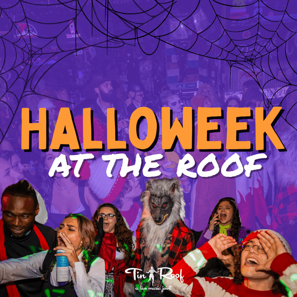It’s the spookiest time of the year and we’re celebrating ALL WEEK LONG! Grab your crew, dress to impress, and join us for a full week of tricks, treats, and Tin Roof fun! Click below to see all the fun we have lined up!